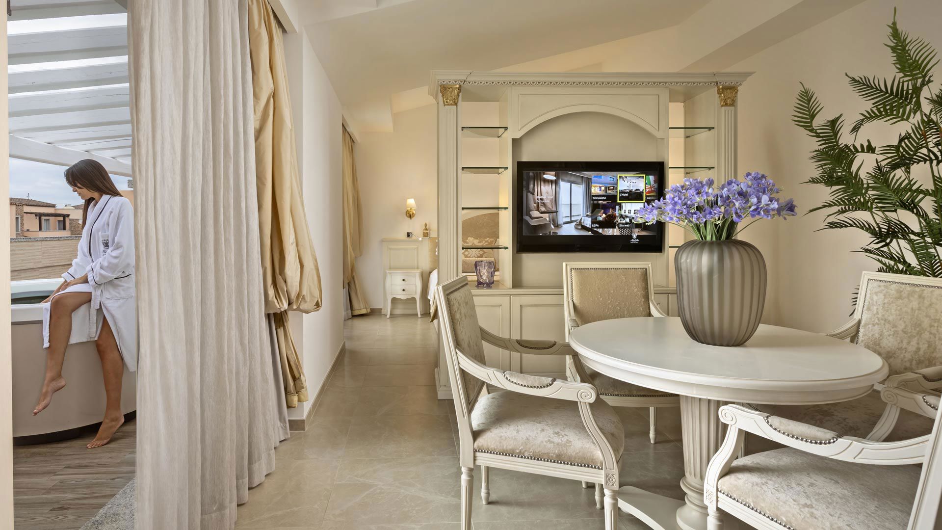 A one-of-a-kind heavenly retreat, an exclusive green area by the shallow emerald sea. Just a short walk from the hotel, the white furnishings against the blue sea create a unique, elegant atmosphere.